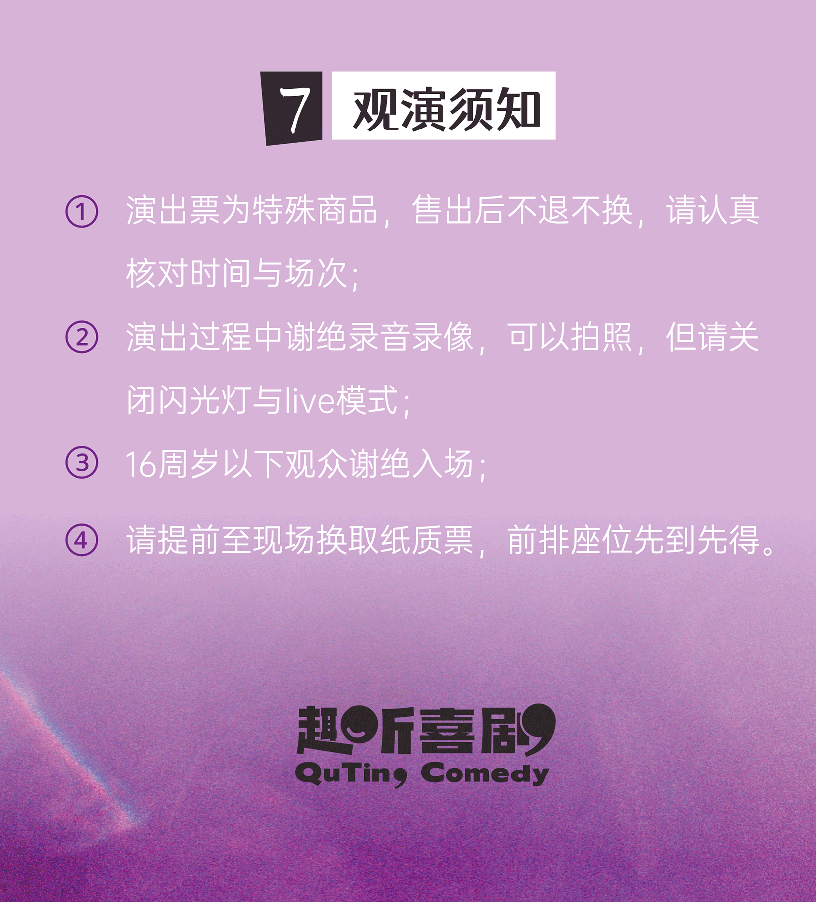 票品为有价观演凭证,非普通商品,其背后承载的文化服务具有时效性、唯一性等特征,如非演出变更、演出取消、票品错误的原因,不提供退票品服务,购票时请务必仔细核对并谨慎下单。
